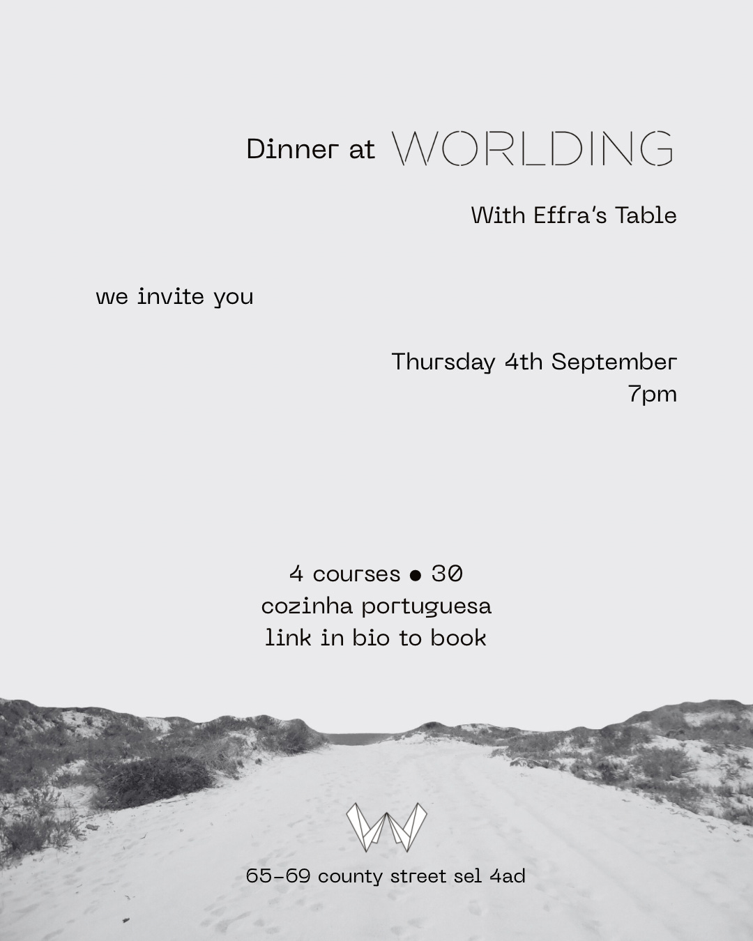 Experience the unique ambiance of WORLDING as you indulge in this culinary journey curated by Effra’s Table and Chef Artur. The evening promises to tantalize your taste buds, spark conversations, and create lasting memories.